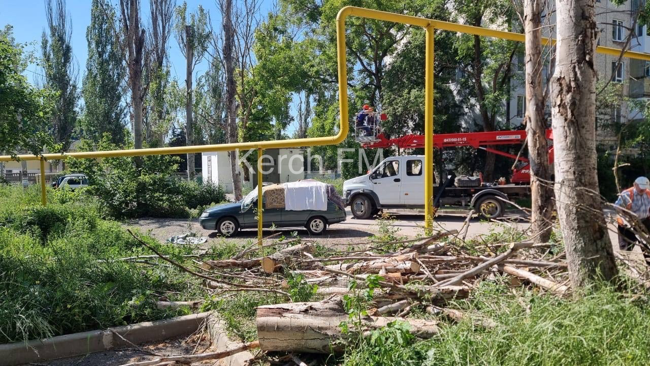 В Керчи 7 июня во дворах на улице Горького пилили деревья, - передает Керчь.ФМ. Рабочие с помощью спецтехники убирают высокие деревья, которые переросли многоэтажку.