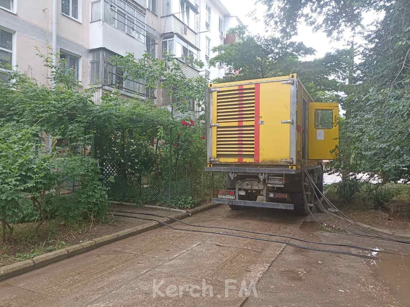 Чтобы не оставлять надолго летом людей без света и одновременно вести восстановительные работы, КРЭС запитал весь дом от генератора.