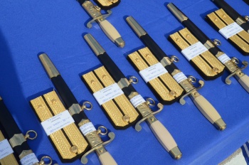 После завершения официальной части выпуска во Владимирском соборе, усыпальнице адмиралов, прошло освящение кортиков - личного оружия молодых офицеров.