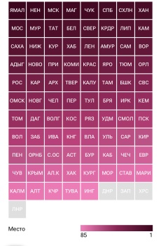 Последние три места у Ингушетии, Тувы и Карачаево-Черкесской Республики.