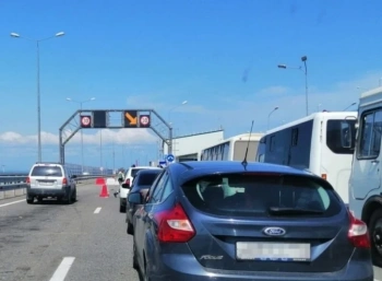 В субботу утром на подъезде к Крымскому мосту со стороны Кубани образовался автомобильный затор на 5 км, ко второй половине дня с учетом растущего трафика он увеличился до 9 км.