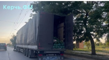 Напротив мирового суда Керчи сломалась фура полная арбузов