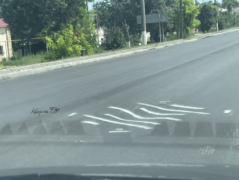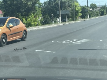 Провал на дороге по Чкалова обозначили белой краской. Какую цель преследовали  художники - разнополосники, неизвестно, но внимание водителей это привлекает, - передает Керчь.ФМ.