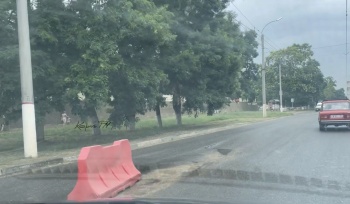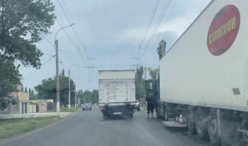 Сегодня на объекте рабочих не заметили. Дождик испугались, шторм помешал, с ног ветер сносит? Зато фуры с отстойника в аэропорту одна за другой едут, не зная керченских ловушек. Одна из таких фур нашу ямку-то и поймала, как раз недалеко от больницы.