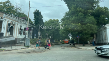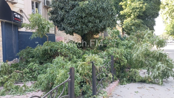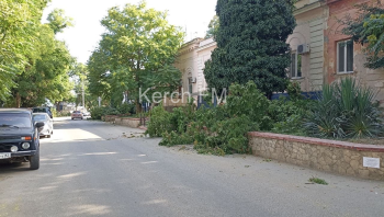 В Керчи на улице Театральной произвели обрезку зеленых деревьев. Стоит отметить, что рабочие оставили спиленные ветки на газоне, - передает Керчь.ФМ.