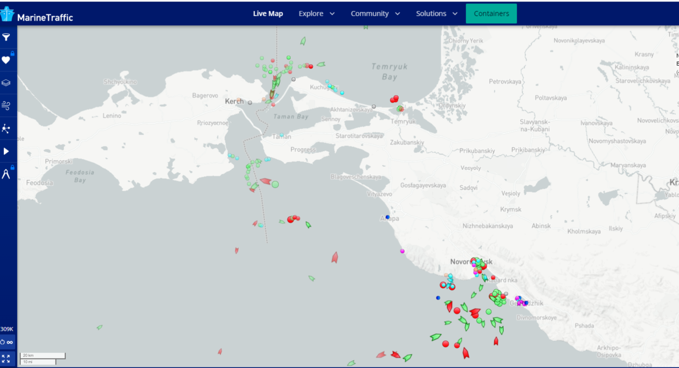 На картах навигации видно, что количество судов на якорных стоянках 450, 451, 741 которые керчане наблюдают с горпляжа, Героевки, перемычки, заметно сократилось, как и сократилось количество судов на стоянке со стороны Азова.