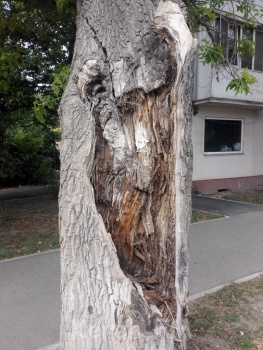На кольце по Комарова, там, где ездят автобусы, машины, где ходит много людей, стоит старое дерево со сгнившим стволом. А 100 метров в сторону паспортного стола друг напротив друга еще два таких же. Крик о помощи уже звучит от керчан. Кстати, дерево находится на муниципальной земле, - передает Керчь.ФМ.