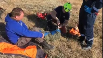 "Сотрудники МЧС, используя специальные носилки, организовали безопасный подъем мужчины к служебному автомобилю, после чего доставили его к автомобилю скорой медицинской помощи для дальнейшей госпитализации. Кроме того, спасателями с использованием моторной лодки параплан был эвакуирован на берег", - добавили в ведомстве.