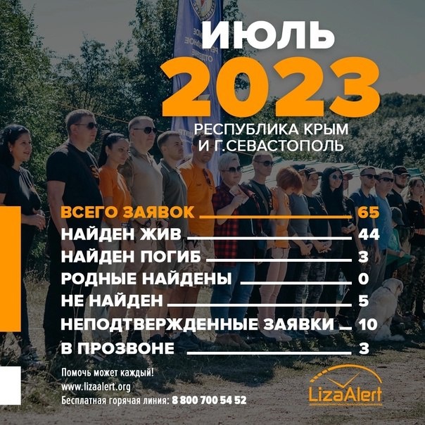 Поисковый отряд «ЛизаАлерт» Крым в июле принял 65 заявок на поиск людей. Из них 10 не подтвердились, - передает Керчь.ФМ.