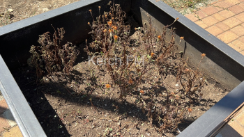 Так, парк им. Гагарина зарос огромной травой. Кроме этого, большая часть зеленных насаждений высохла. Такая же беда и с цветами в клумбах, их никто не поливал.