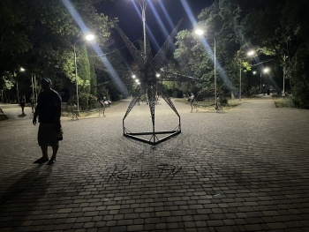 Когда звезда горела в новогодние праздники, когда рядом стояла елка и горели гирлянды, все было хорошо. Но Дед Мороз уже ушел давно, а потухшая звезда осталась. Лучи ее как раз на уровне головы человека. Многие, кто гуляли в Молодежном парке поняли о чем идет речь, - передает Керчь.ФМ.