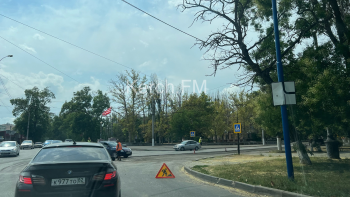 На 15:00 часов на перекрёстке было затруднено движение транспорта. Специалисты установили предупреждающие дорожные знаки