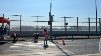 В Керчи 28 августа на путепроводе по шоссе Герое Сталинграда идут работы по нанесению дорожной разметки. Как передает корреспондент Керчь.ФМ, специалисты размечают пешеходные переходы. Работы начали сегодня утром.