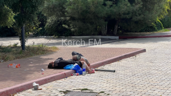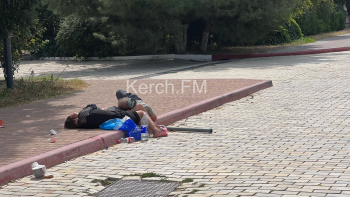 Парочка устроила себе отдых прямо на тротуаре в центре Керчи