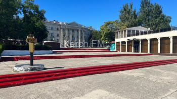 Так, красные бордюры обновляют либо перекрашивают. На Ленина и набережной бордюры, ступени, парапеты снова красные.