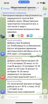 Уважаемые керчане❗️ Напоминаем о работе телеграм-канала «Общественный транспорт. Керчь», где обсуждаются и оперативно решаются вопросы, касающиеся работы городского транспорта», - написала пресс-служба администрации.