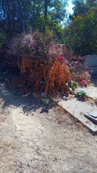 Сухие ветки, старые цветы, венки, типичный кладбищенский мусор давно никто не вывозил.