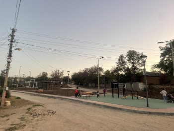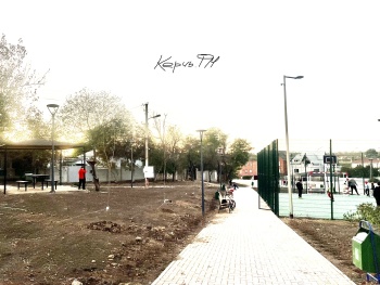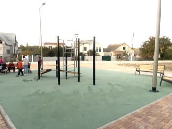 Редакция Керчь.ФМ вечером, когда родители с детьми наполнили площадку, сняла то, что там наукрашали. Никакого газона - это понятно, никаких деревьев, никакой вьющейся изгороди. За бюджетные городские деньги купили и зеленхоз высадил там суровый колючий барбарис между детской и спортивной площадкой. Наверное, чтобы дети не вздумали делать шаг вправо - шаг влево. И 15 полумертвых кленов. Это про это озеленение глава местной администрации говорил, когда торжественно сообщал о новых технологиях, и озеленении после знойного лета.