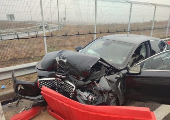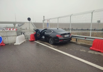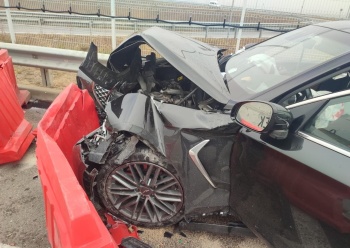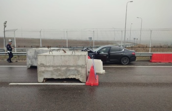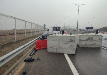 На автоподходах к Крымскому мосту иномарка протаранила бетонный блок