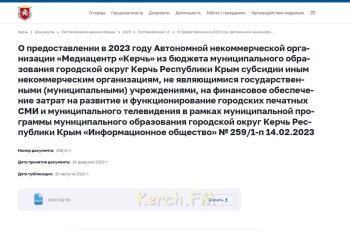 Администрация города своим постановлением от 14 февраля предоставила на 2023 год в рамках программы «Информационное общество» 5 миллионов из городского бюджета Автономной некоммерческой организации «Медиацентр «Керчь».
