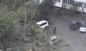 А если деревья не рвали электросети, он били машины. В районе Генерала Петрова разбиты минимум три автомобиля.