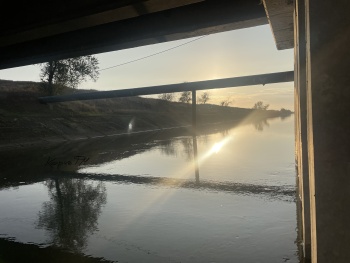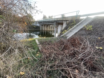 В прошлый раз все было в грязных запутанных водорослях. По состоянию на 11 ноября участок от травы вычистили, с дна удалены мусор и растительность. Бетонные одежды канала у кромки воды без видимых трещин и разрушений.