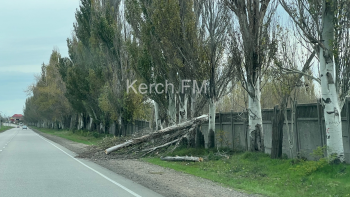 В Керчи по дороге в Капканы рядом с дорогой упал тополь. Он не выдержал сильного ветра. Стоит отметить, что вдоль дороги в этом месте еще много тополей и на практически всех нарисован красный крест, - передает Керчь.ФМ.