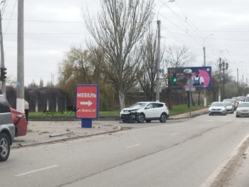 Хундай вылетел на тротуар к зданию АТП, Тойота перегородил выезд с Фурманова со стороны порта.