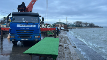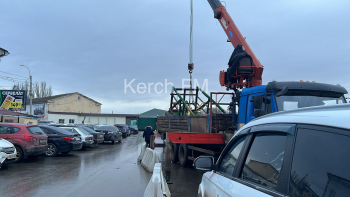 В Керчи ночью Крещенская купель развалилась во время шторма. Сегодня, 19 января с самого утра работают сотрудники «ЖилСервисКерчь». Они грузят купель в машину.