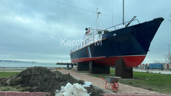 В Керчи 22 января на морвокзале рабочие приводят территорию в порядок около памятника - катер "Гриф". На данный момент уже около него сделали тротуар, - передает Керчь.ФМ