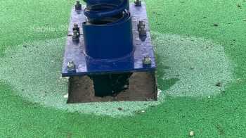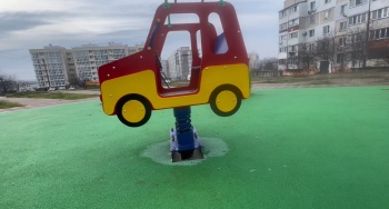 Игровой домик отремонтировали, но если считать нормальным то, что острая металлическая основа с болтами отступает вверх сантиметров на 20, то с российскими стандартами безопасности можно поспорить. Как будут кататься дети на балансире, один из которых акается не только вверх-вниз, но и одновременно из стороны в сторону, не понятно также.
