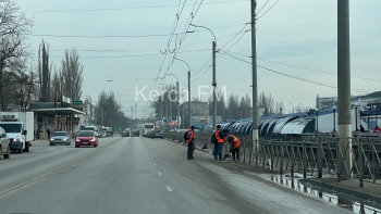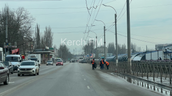 В Керчи продолжают убирать на дорогах грязь