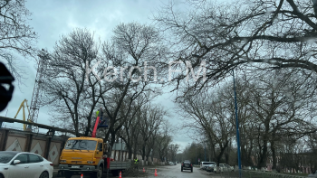 В Керчи 19 февраля на улице Кирова вдоль дороги производят обрезку деревьев. Спиленные ветки складывают на газон, - передает Керчь.ФМ.