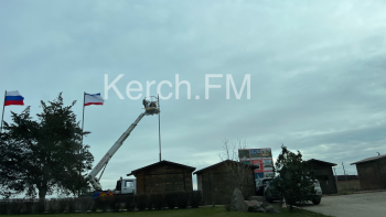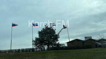 В Керчи на въезде в город заменили флаги, - передает  Керчь.ФМ. Работы провели с помощью техники в рабочее время.