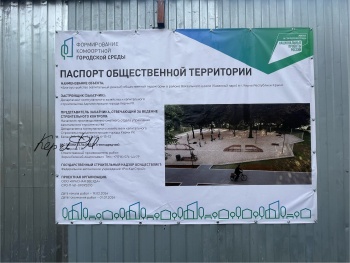 На территорию завезли строительный сарай с паспортом объекта на фасаде, щебень и бордюрный камень. Участок работ разметили.