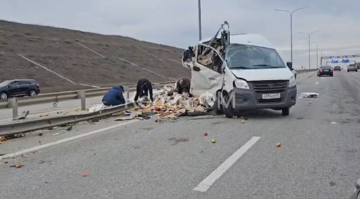 Сегодня микроавтобус с яблоками снес ограждения на Тавриде. Авария произошла в районе Симферополя, - передает Керчь.ФМ.