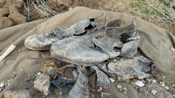 Недалеко от найденных останков на том же склоне нашли некий металлический предмет, похожий на бур. Поисковики не исключают, что он тоже здесь пролежал со времен Великой Отечественной войны. Что это за предмет, для чего он предназначался, еще будут устанавливать.