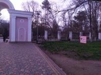В парке нет установленного законом места выгула собак, которое должно быть огорожено. На входе в такое место должна быть соответствующая табличка, а внутри находиться контейнер для экскрементов. К слову сказать в Керчи нигде нет такого места для выгула собак. Администрация Керчи анонсировала соответствующее место в Казенном саду, но что-то пошло не так со строительством площадки для выгула, как и с самим благоустройством.