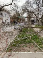 Крымэнерго восстановили электроснабжение, убрали поваленное дерево и мусор. В результате ЧП повреждены припаркованные автомобили. Претензий водители не высказывали.