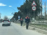 Кроме этого, в городе начались работы по покосу травы. В разных районах косят траву вдоль дорог. Её сразу собирают в пакеты рабочие.