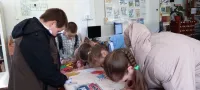 Сотрудники библиотеки совместно с юными читателями разместили на стенде «Ладошки добра», предварительно написав на них слова о дружбе и согласии.
