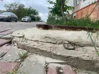 На фото проваленный тротуар на Блюхера, 19