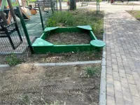 Правда в песочнице вместо песка кусочек целины, а по детские качели не хватило благоустроенного участка, поэтому их поставили просто на землю. Про траву нескошенную и необработанную территорию от клещей можно же уже не писать?