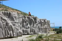 Уже завершена зачистка барельефа, продолжается работа на самом монументе «Парус». Специалисты демонтируют верхний слой и деструктивную поверхность краски, далее приступят к выравниваю поверхности и нанесению цементного раствора.