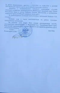 Неугодную юристку-замдиректора МКУ «Служба городского хозяйства», а в народе «зеленхоз», от которой мечтает избавиться руководство СГХ и администрация, вновь суд восстановил на работе с выплатой неполученной зарплаты и морального ущерба. Это уже второе увольнение одинокой матери за полтора года, и коренная причина всему нежелание специалист закрывать глаза на нарушение закона, - передает Керчь.ФМ.