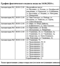 Керченский филиал приносит извинения за причиненные неудобства. Населению и предприятиям необходимо иметь запас питьевой воды на этот период времени. Водоканалом будет обеспечен подвоз питьевой воды специализированным транспортом, согласно графику и поступающим заявкам. Адреса нахождения специализированного транспорта могут корректироваться, согласно поступающим заявкам абонентов, информацию о местонахождении специализированного транспорта и заявку можно получить и оставить в диспетчерской службе.