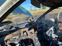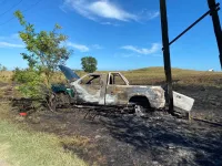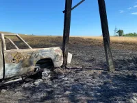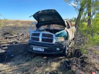 Пожар начался рядом с пшеничным полем. Машина выгорела полностью, урожай удалось спасти.