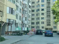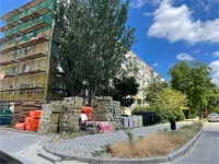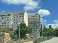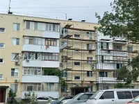 На Черноморской стоят строительные леса, проводят высотные работы.