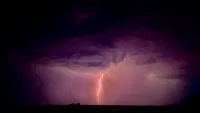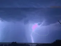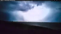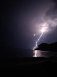 Керчане в соцсетях делятся фотографиями молнии, которую можно было наблюдать вчера ночью в Керчи.