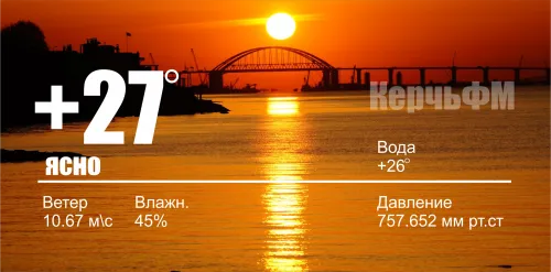 Сегодня днем в Керчи, 14 июля, ожидается ясная погода, температура воздуха от +25.1° до +29°С, ветер северный 11.2 м/с, порывы до 9.91 м/с, давление 756.8 мм рт. ст., влажность 48%.